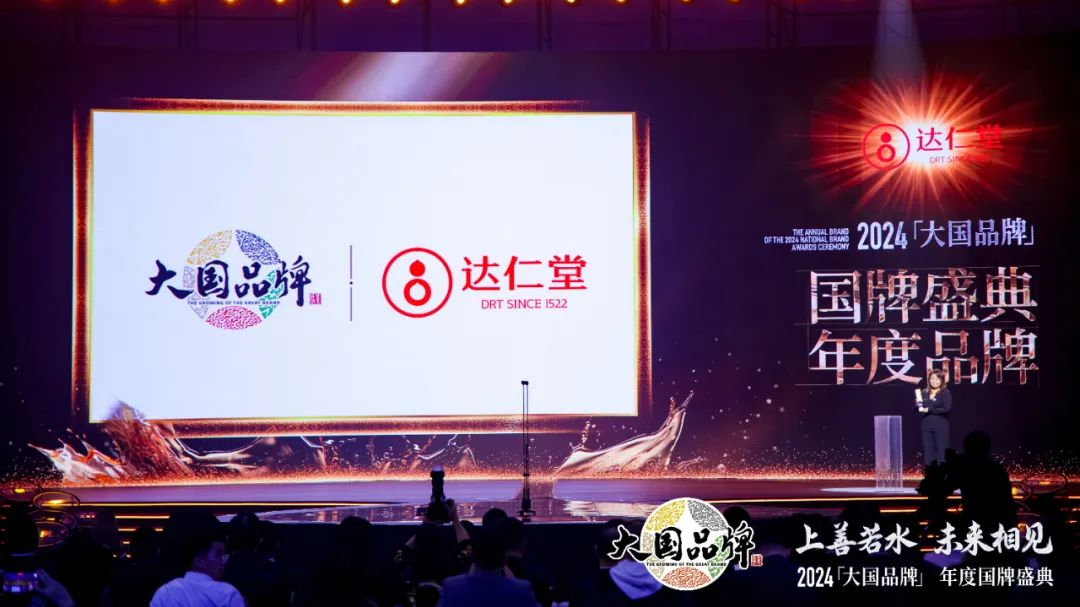 近日,2024《大国品牌》国牌盛典以“上善若水 未来相见”为主题,汇聚近200家中国知名企业品牌于北京·水立方,共同见证中国品牌的崛起与壮大。津药达仁堂受邀出席本次盛典活动,荣获“2024《大国品牌》国牌盛典年度品牌”殊荣。